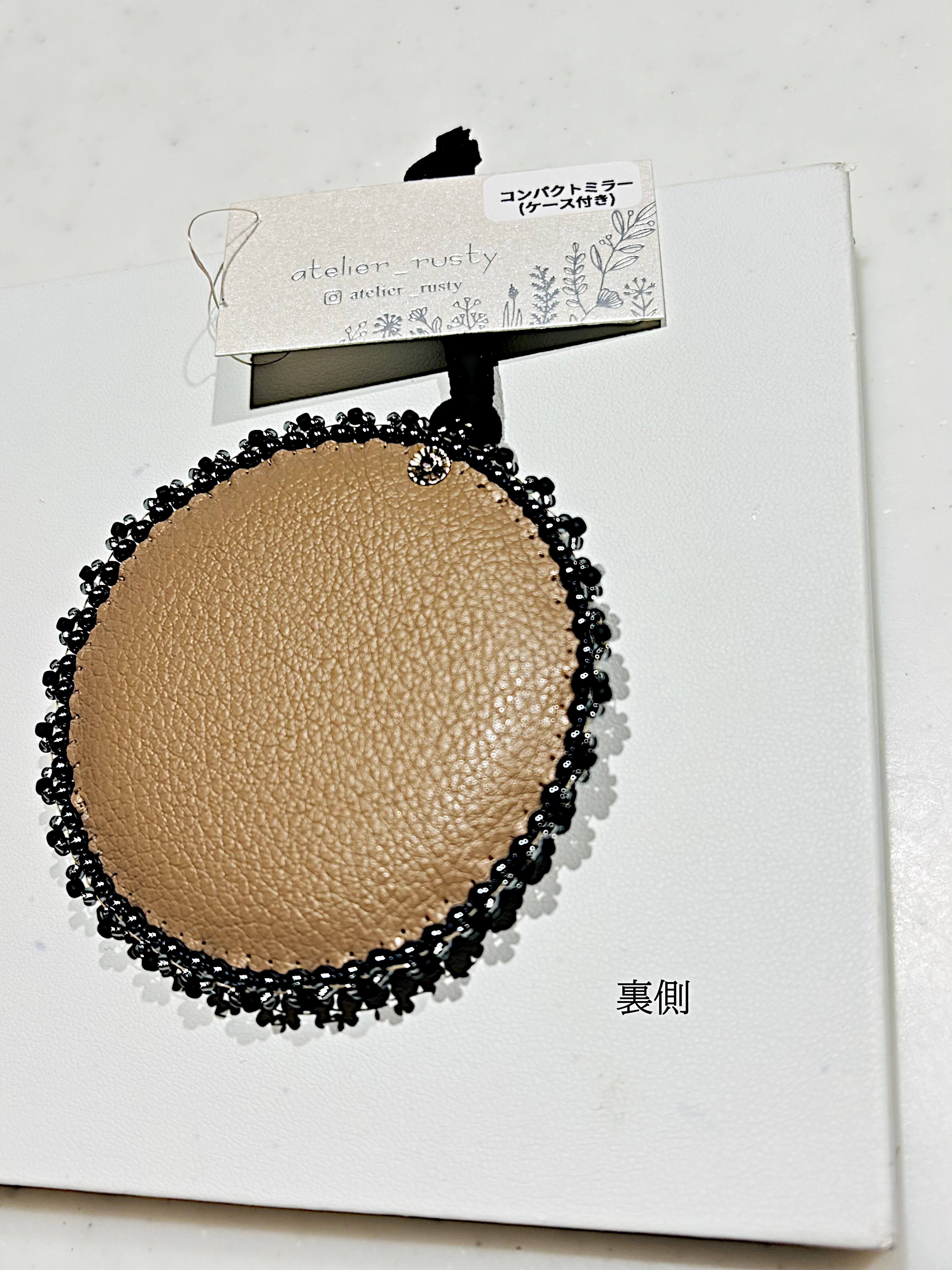 また、鏡上部にスエード調のヒモをつけてケースから出しやすく工夫しました
