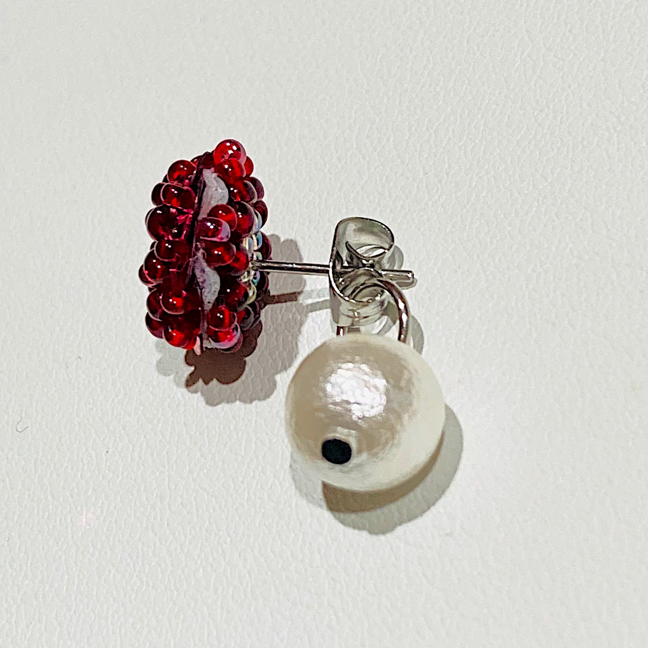 キャッチ部分にコットンパールをつけていますから耳たぶ裏にパールが下がり奥行きができて素敵です